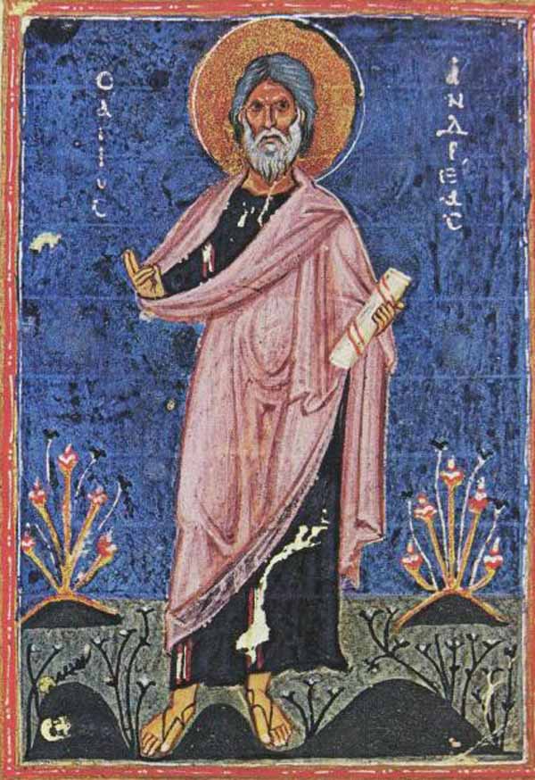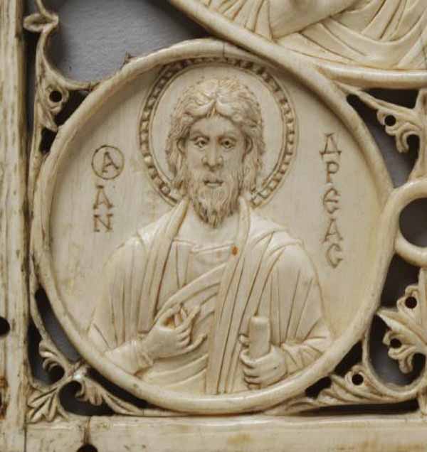 Уже в ранних памятниках облик Андрея Первозванного имеет ярко выраженные индивидуальные особенности: